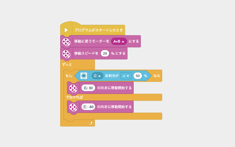 カラーセンサー、超音波センサーなど本格的モーターやセンサーを使いながら学習ができます。