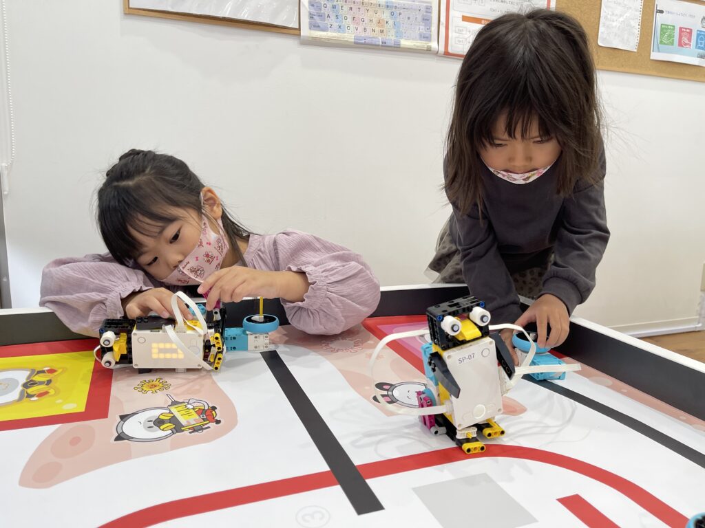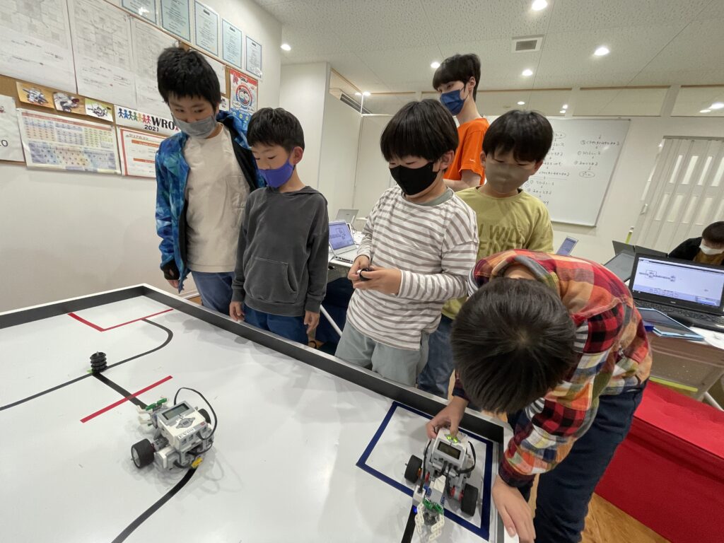 ミッションクリア後はその日のレッスンテーマに沿ったアウトプットや学習内容を深く掘り下げます。制作したロボットをよりよくするための改造を施したり、ペアと協力して作成したプログラムについて、頑張ったことや工夫したことを全員の前で発表を行ったりと、レッスン内容によって様々です。発表は、はじめは緊張したり固まってしまうこともありますが、回を重ねることで堂々と人前で話せる力が身についていきます。